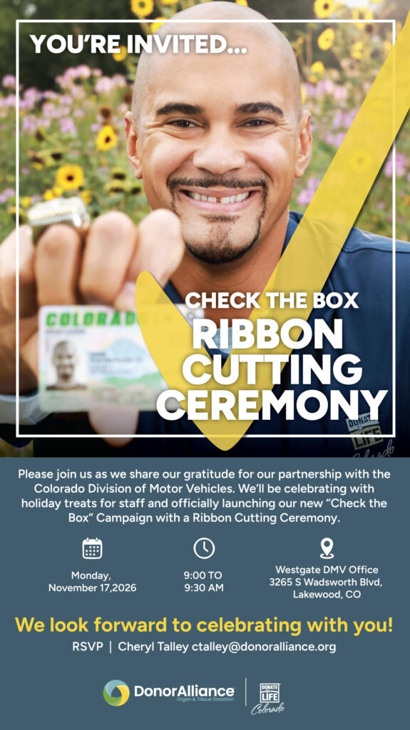 The Proclamation project for National Donate Life Month started again in 2022 with a goal of raising awareness about the importance of registering as an organ, eye, and tissue donor in as many localities throughout the Donor Alliance service area as possible. What is a Proclamation? It is a formal public statement typically issued by a mayor or governor to recognize the importance of a community for an event or major national observance. Some proclamations are often read during regular meetings or sessions. Please join the Donate Life State team member, Chris Klug Foundation as Fruita, CO proclaims April As National Donate Life Month.