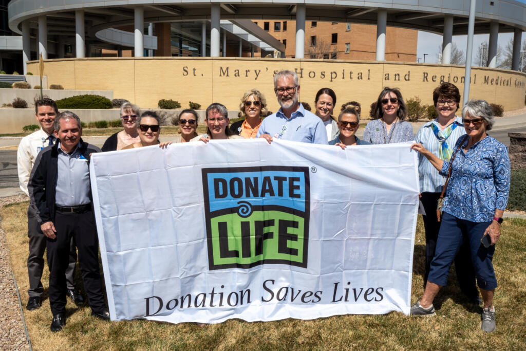 April is National Donate Life Month, a national observance highlighting the importance of organ, eye and tissue donation. Flag-raising ceremonies bring awareness of what it means to be an organ donor and highlights the partnership between Donor Alliance/Donate Life Colorado and Saint Mary’s Regional Hospital.